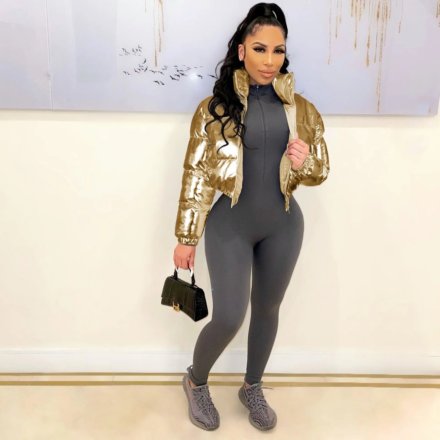 Autumn Winter Women Gilded Puffy Jacket Fashion Clothes Streetwear